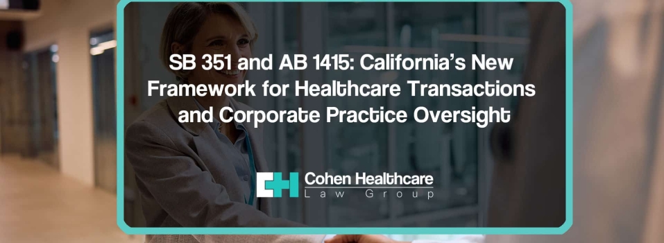 SB 351 and AB 1415: California’s New Framework for Healthcare Transactions and Corporate Practice Oversight