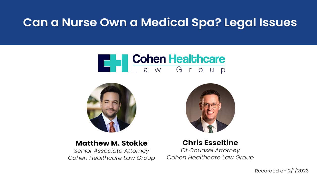 So before anything else, my name is Dana and I’m the Marketing Director of Cohen Healthcare Law Group. Helping me is our IT Director, Oki, and our Senior Care Team member, Christian. Today’s webinar is part of a three-part webinar series that focuses on nursing businesses, IV hydration clinics, med spas, and healthcare ventures for non-physicians. And the title for today is Can a Nurse Own a Medical Spa?: Legal Issues.