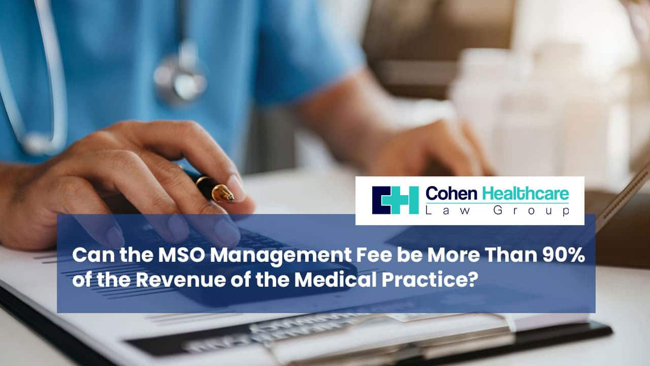 There’s no one answer, what is fair market value? 90%, just kind of my gut reaction to it, is that’s way too high for a management company to be charging. And I always tell clients, at the end of the day, put yourself in the position where you’re defending this fee, and if you’re in court and you see the person up there in the black robes and you’re trying to justify this fee, it might look a little strange that the lion’s share of the practice is going to a lay business, the management company. And so that would raise a number of alarm bells to most judges, to most enforcement agencies out there.