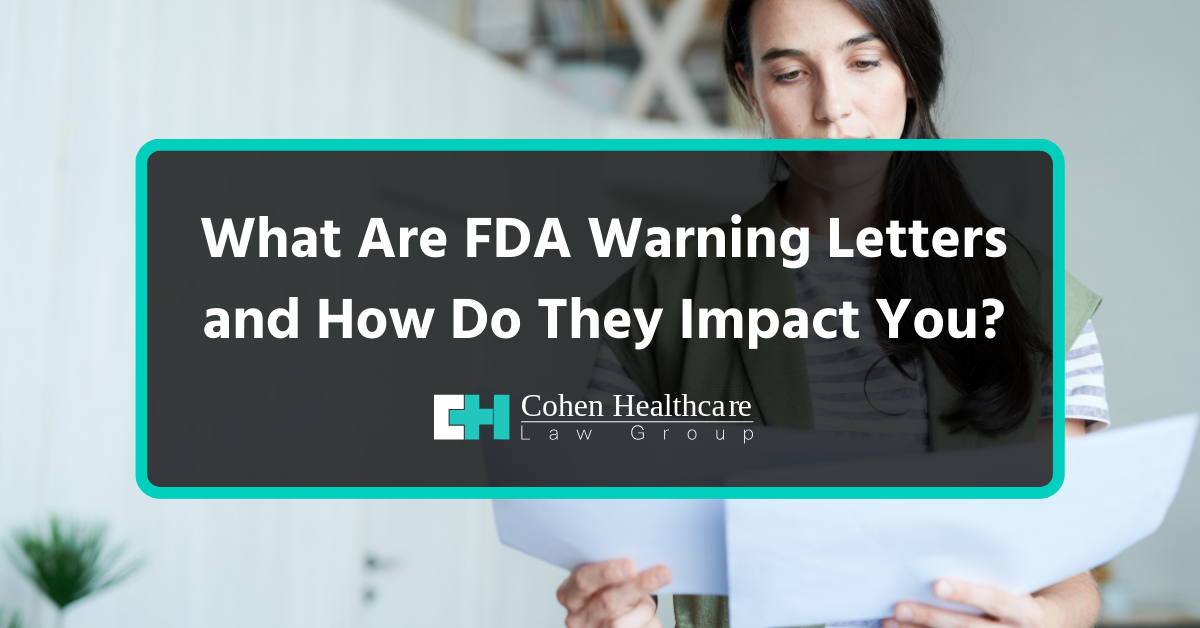 At Cohen Healthcare Law Group, FDA compliance is our specialty. For over 25 years, we’ve helped clients respond strategically and effectively to FDA warning letters. Book a consultation with our legal team today!